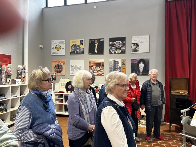 Unsere letzte Busfahrt in diesem Jahr führte uns ins Schallplattenmuseum, das vor zwei Jahren in Nortorf entstanden ist. Während unseres zweistündigen Aufenthaltes wurde uns erklärt, wie die Schallplatte entstand und welche Arten von Schallplatten es gab und gibt, auch eine goldene Schallplatte konnten wir in die Hand nehmen. Wir sahen die ersten Abspielgeräte, die es gab, die Plattenspieler und Musikanlagen unserer Generation oder auch eine sehr hochwertige, exklusive Stereoanlage, die als Leihgabe im Museum gezeigt werden darf. Natürlich bekamen wir auch die unterschiedlichsten Tonqualitäten zu hören. Im Obergeschoss werden Ausstellungen präsentiert, zurzeit Catharina Valente und Bert Kaempfert.