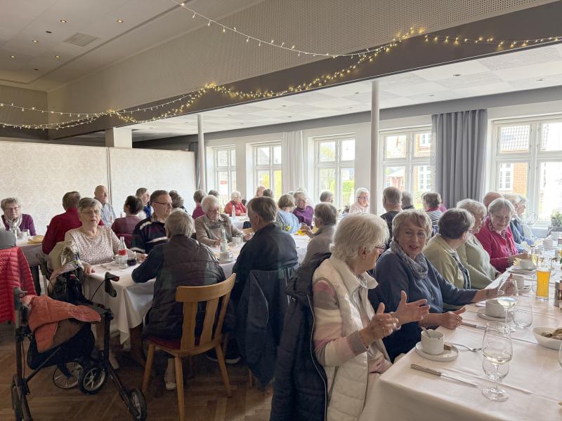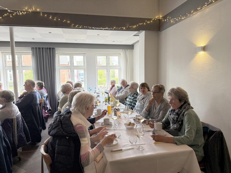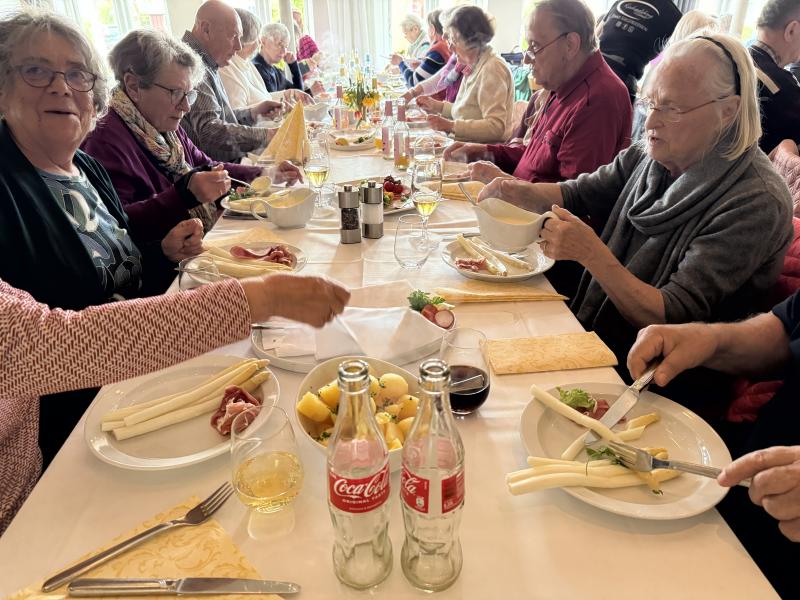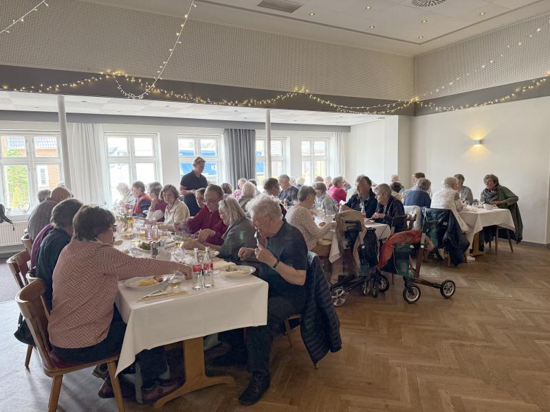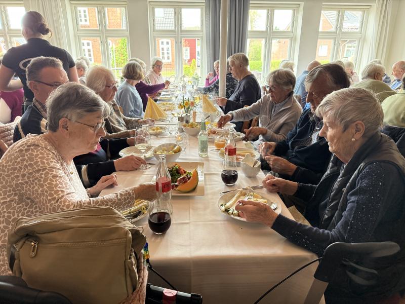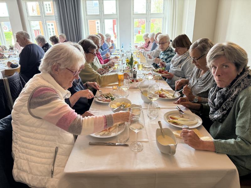 Es ging nach Mildstedt in den Kirchspielskrug, wo uns ein reichhaltiges „Spargelessen satt“ erwartete. Mildstedt ist ein knapp 4.000 Einwohner starkes Städtchen, das ca. 4 km von Husum entfernt liegt mit dem Kirchspielskrug als Landgasthof, der Veranstaltungen mit bis zu 250 Personen anbieten kann.